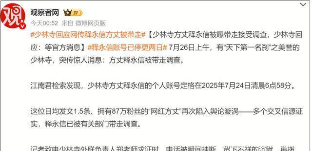 少林寺方丈释永信这次真的被带走了?